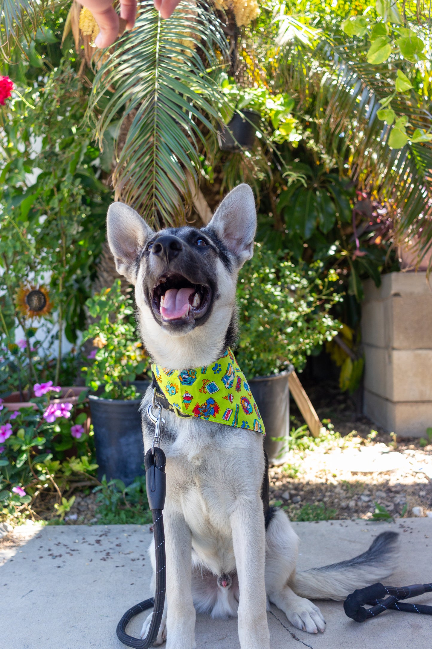 *You can always size up in this bandana and tie a knot to secure the bandana in place before closing the snaps.